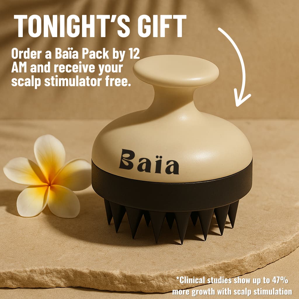 Place your order for the Baïa Hair Growth Pack before 12 AM tonight and receive a free scalp stimulator.